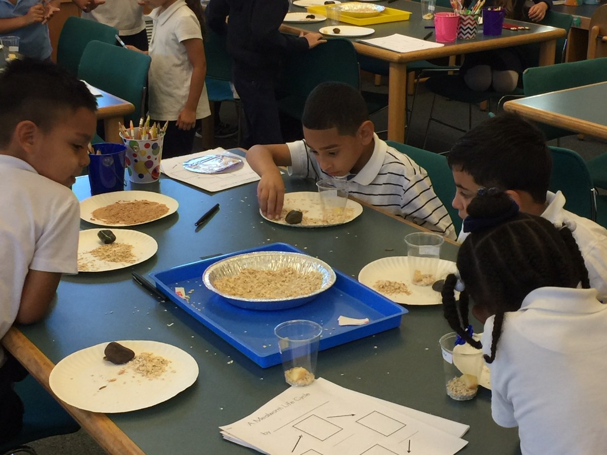 “Our meal worm study. We have been observing and writing about this hard word called metamorphosis. It just means how the mealworms are changing on different days. How come they wait until we go home to change? That’s my big question!” ~ Mae, Grade 1 student